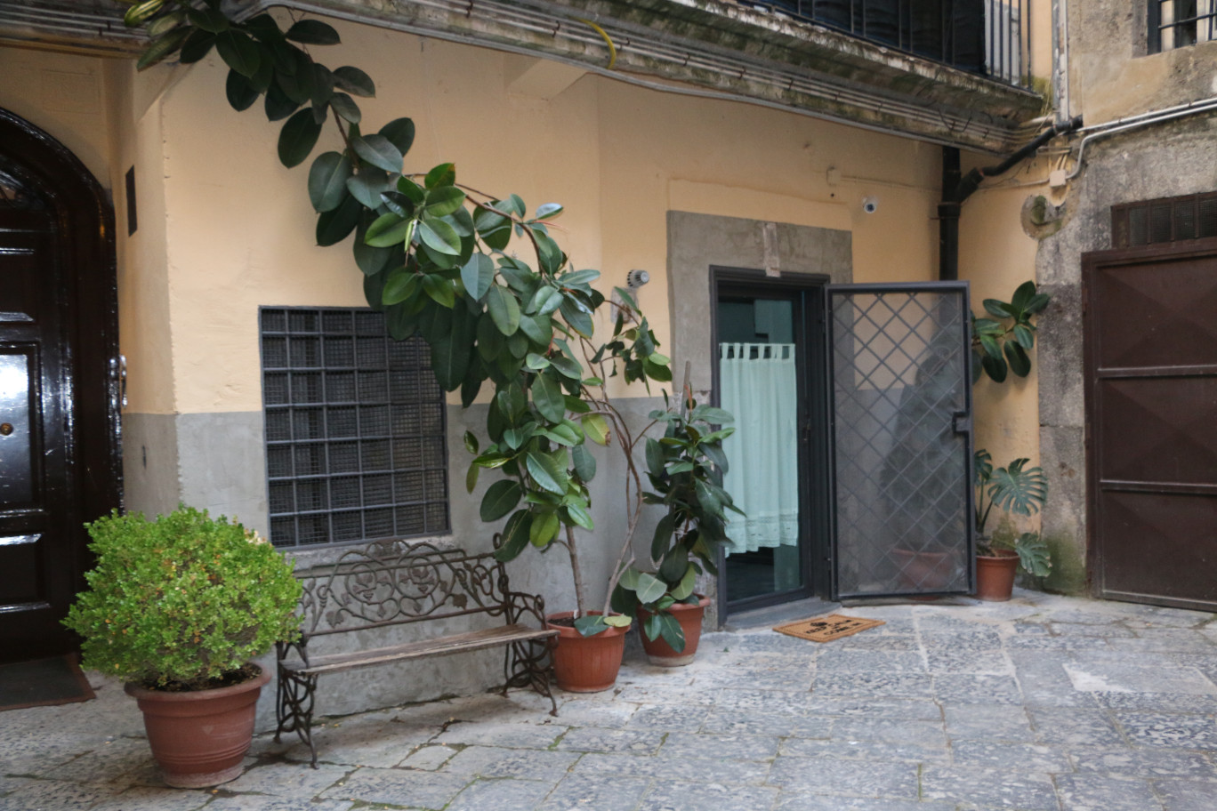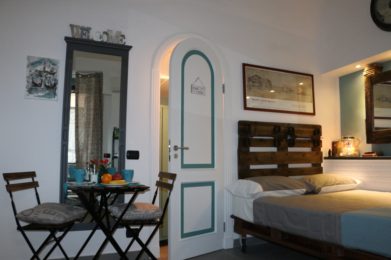 The Lodge è un accogliente monolocale, ben organizzato ed arredato, posto al piano terra all’interno del cortile dell’antico Palazzo Solimena.